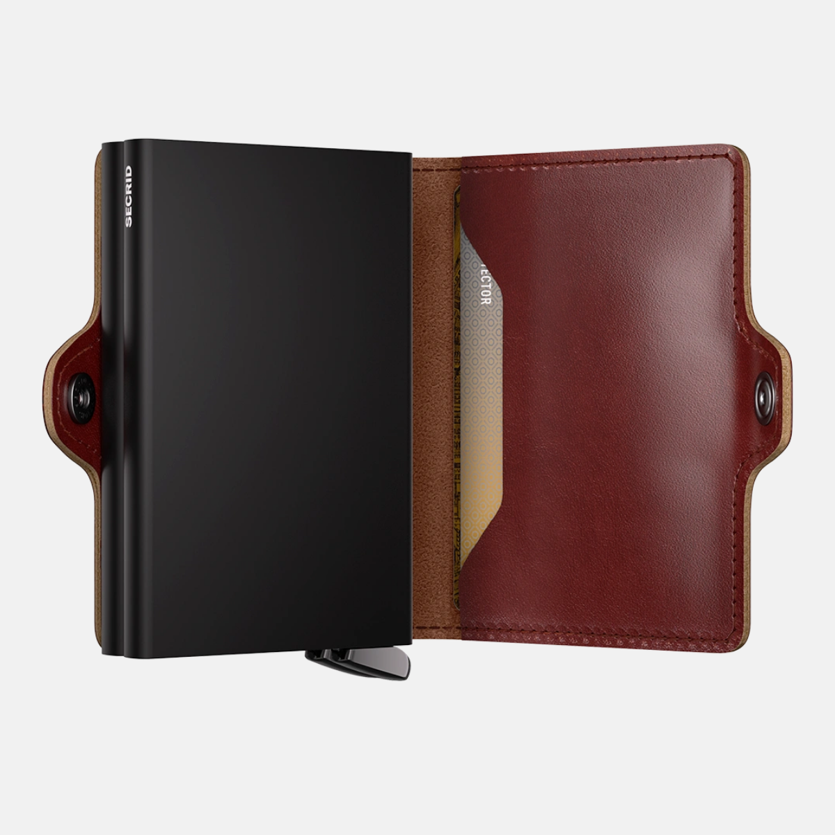 Double the carry, not the size with two card protectors to hold double the content, the Twinwallet carries up to 16 cards, banknotes and receipts, but remains compact in size. Together with its sturdy closure and exterior, to hold extra cards, banknotes and receipts, the Twinwallet holds much but remains compact in size.