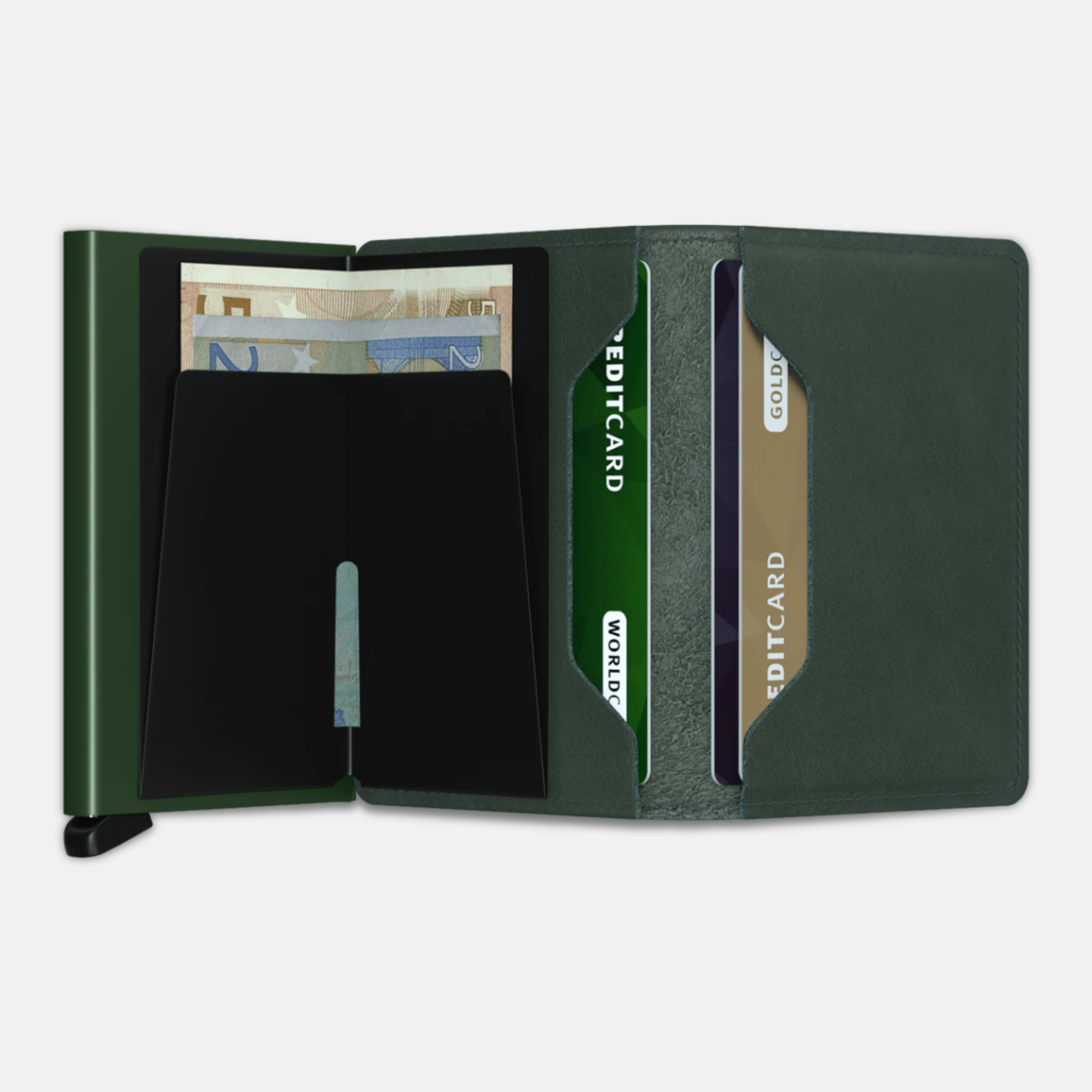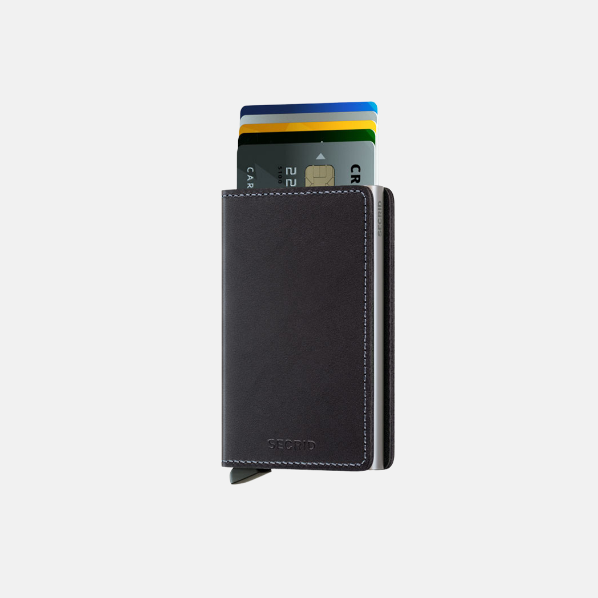 The patented mechanism allows you to slide out your cards with one simple motion, ready for immediate use. The aluminium protects from bending, breaking and unwanted wireless communication.