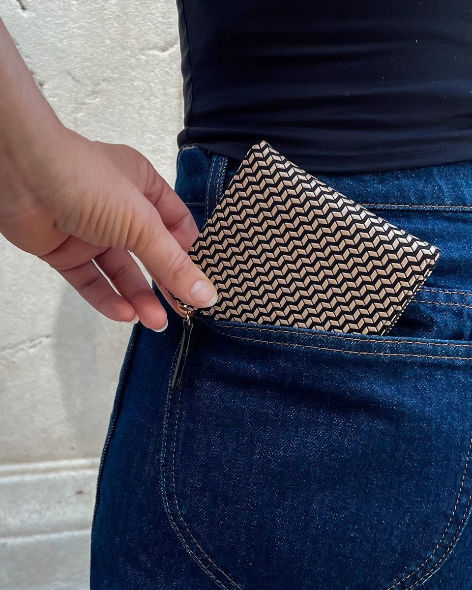Inden Small Wallet Zip Card and Coin Case Chevron Ivory and Black
