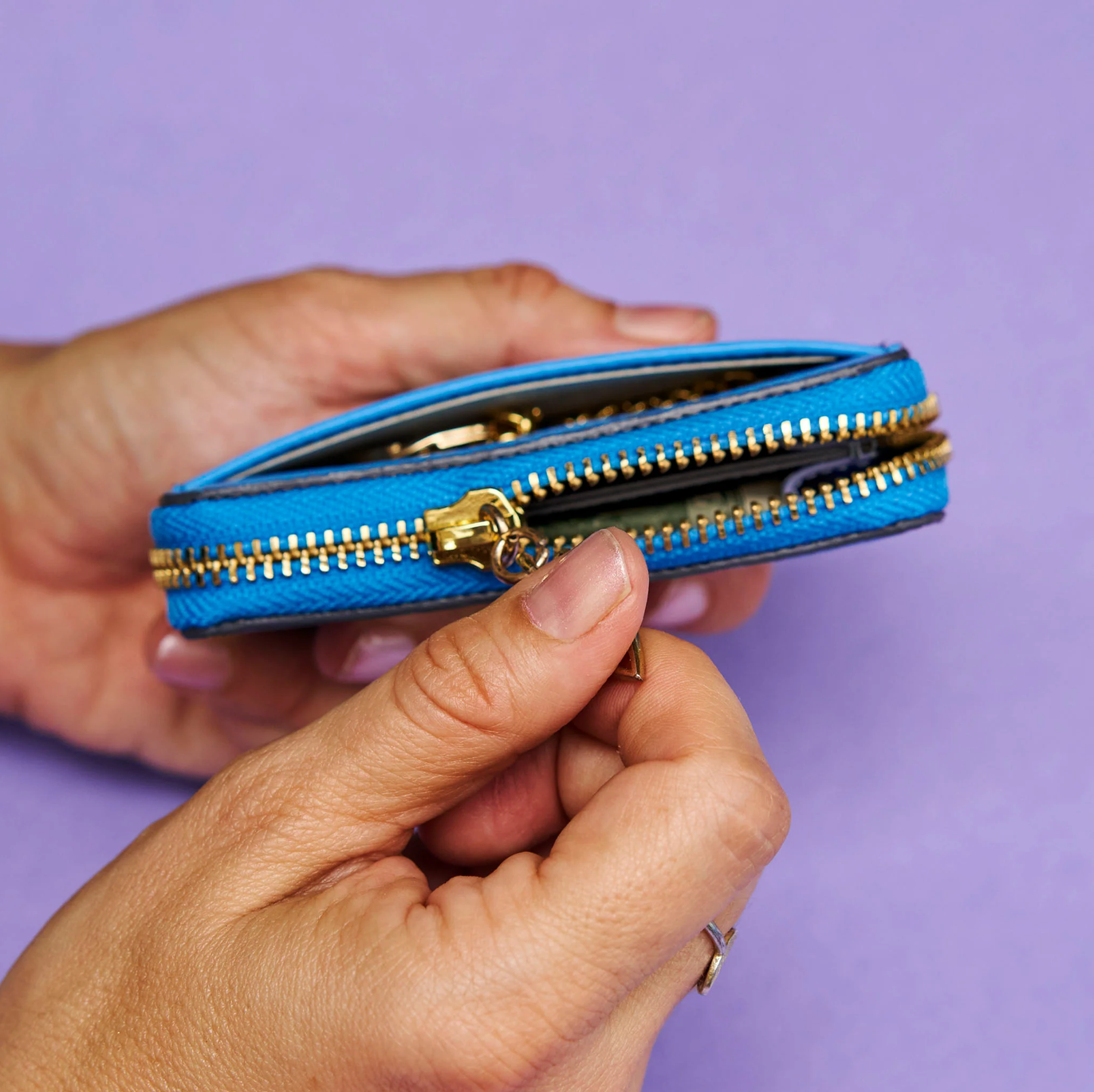 The Coin and Card Key Case is an adorable mini that holds the essentials: a couple of bucks, keys, and the cards you really use. A zip-around coin wallet, front open pocket with key fob, and interior back wall open pocket‚ all in a neat little zip-up!