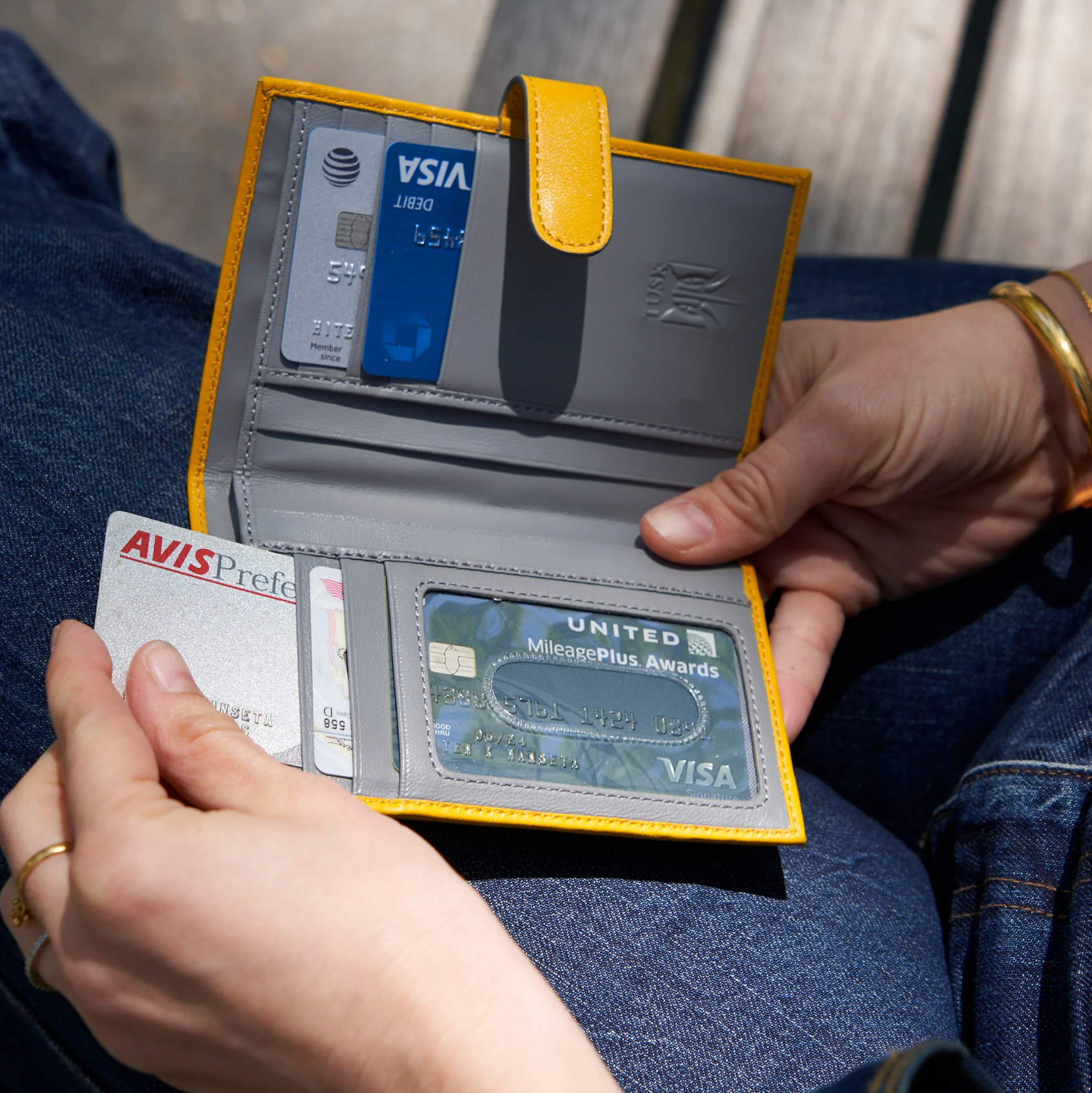 A sleek classic, the slim silhouette folds open to reveal stacked card slots, bringing accessibility and functionality to your everyday wallet. With an interior compartment, ID window and outside zip coin pocket, this style carries it all without adding bulk to your bag.