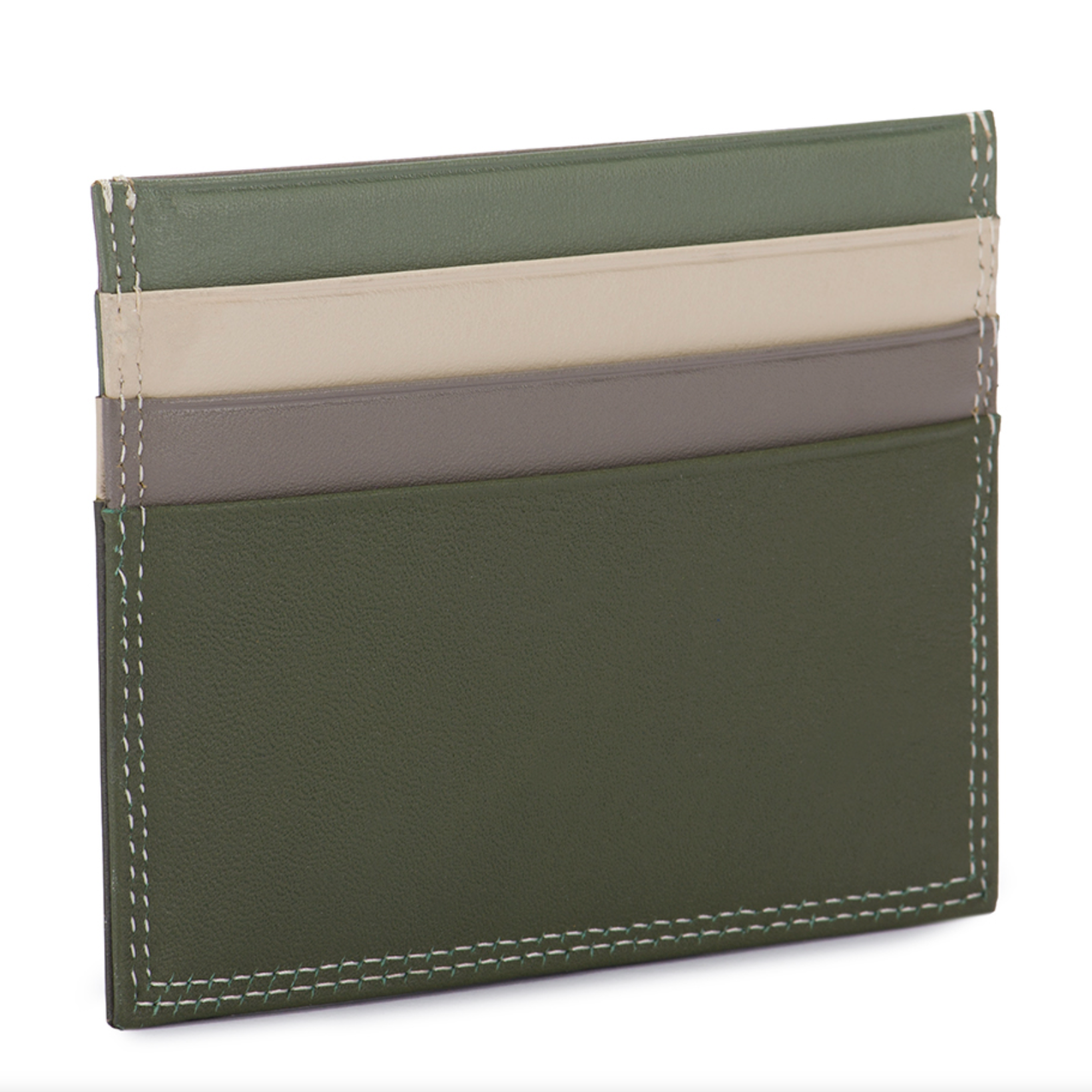 Our colourful leather card holder gives you handy access to credit cards and a transparent window perfect for an ID or Oyster card, to speed up your journey in the rush hour scrum! Now with RFID-protection