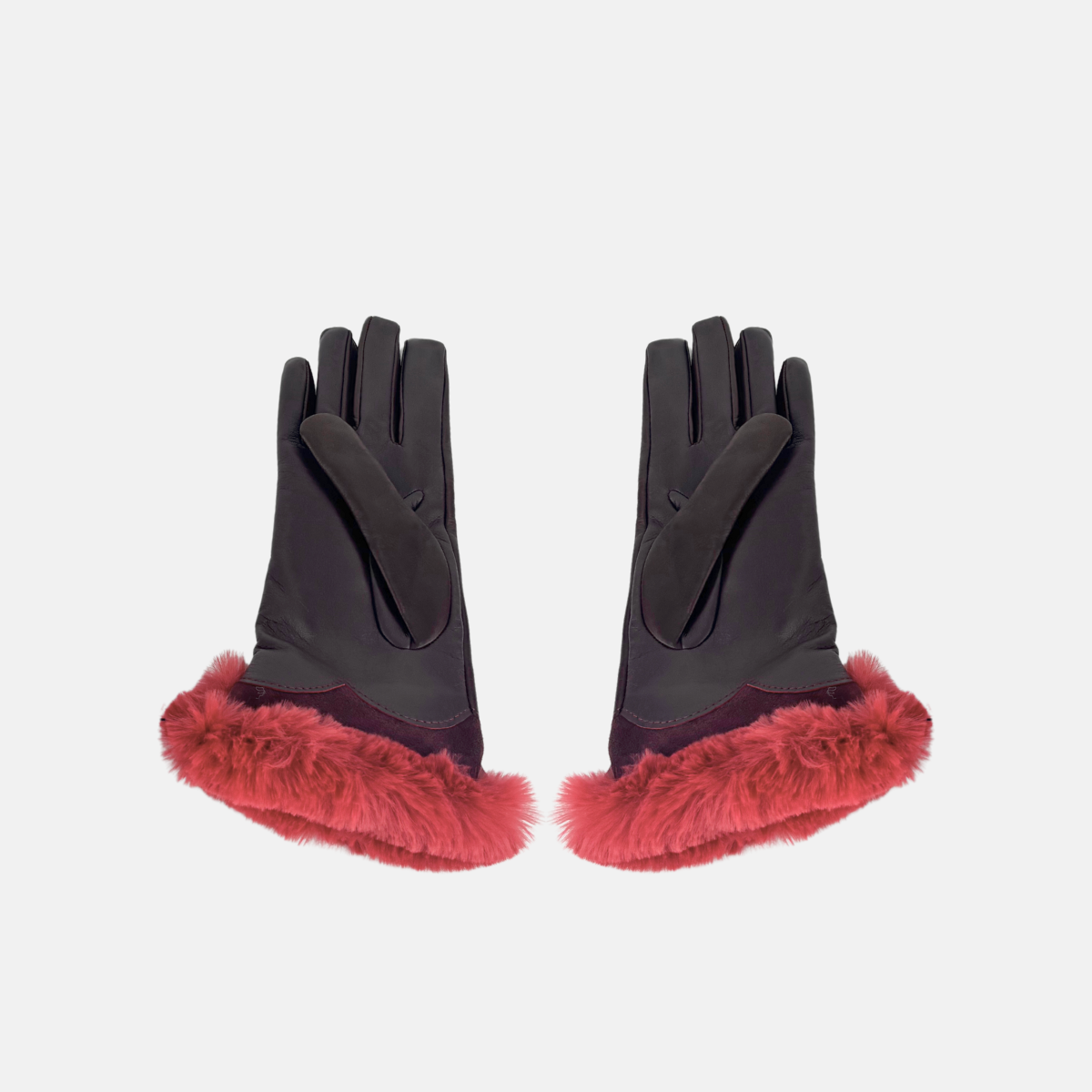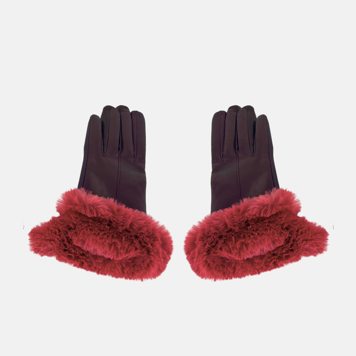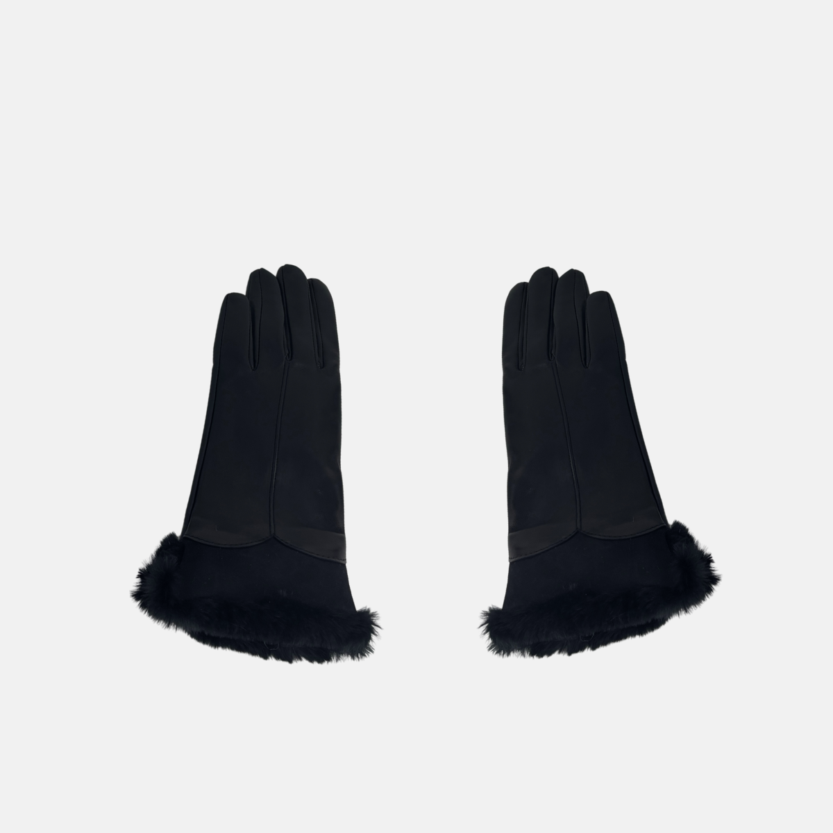 Stay cozy and stylish with these mid length Napa (lamb) leather gloves with soft 100% cashmere lining and a faux fur trim. The trim for the first 2" to keep the wind out from coats with cropped sleeves. The tops of the gloves can be turned out for an extra furry look. Leather is pre-treated with nanotech to make it smartphone and touchscreen compatible.