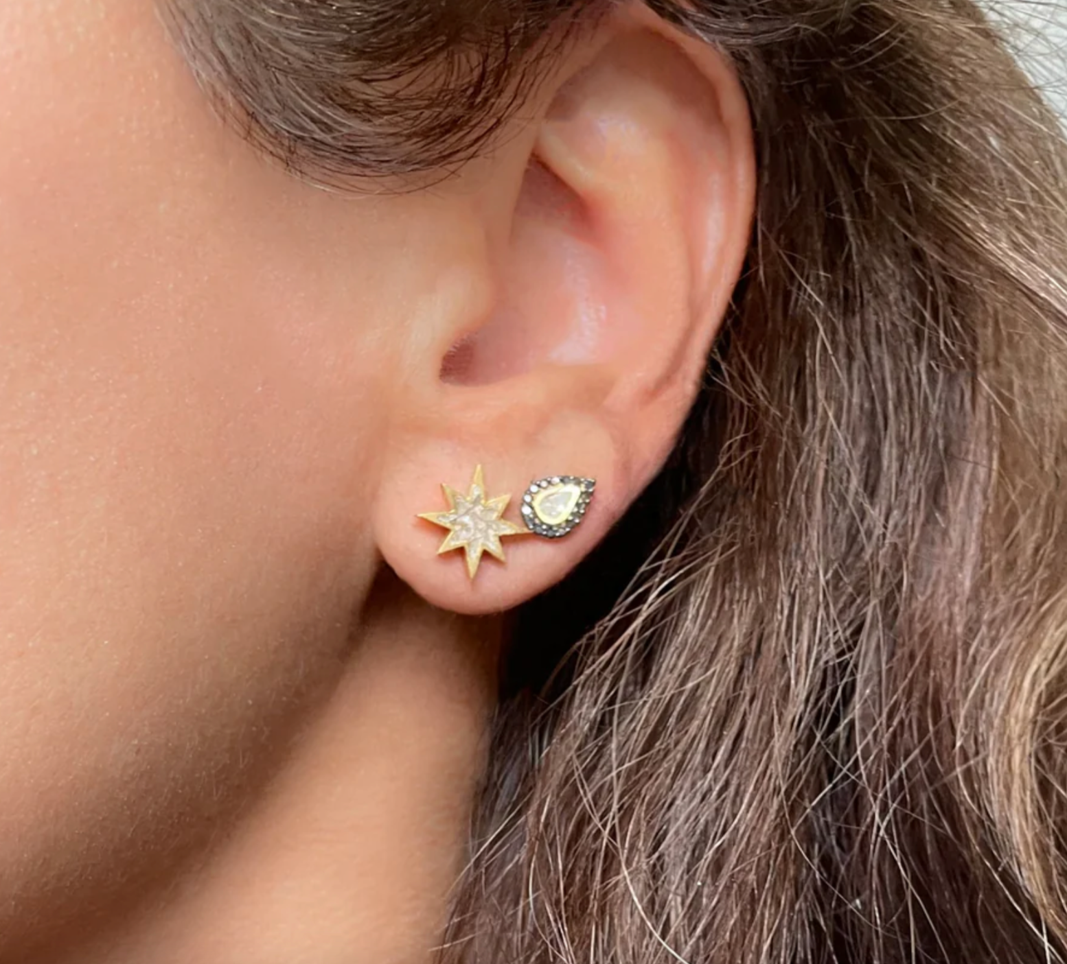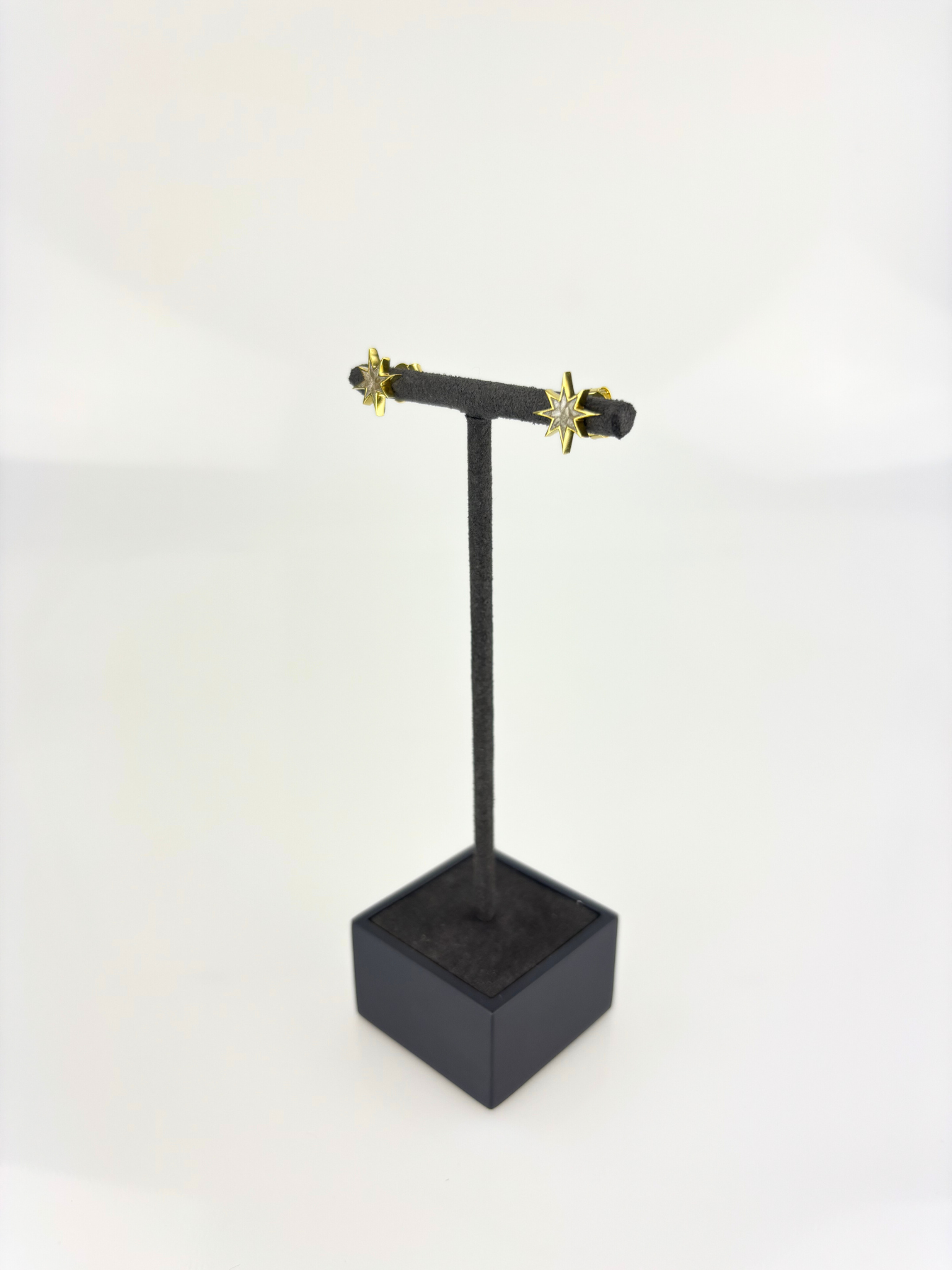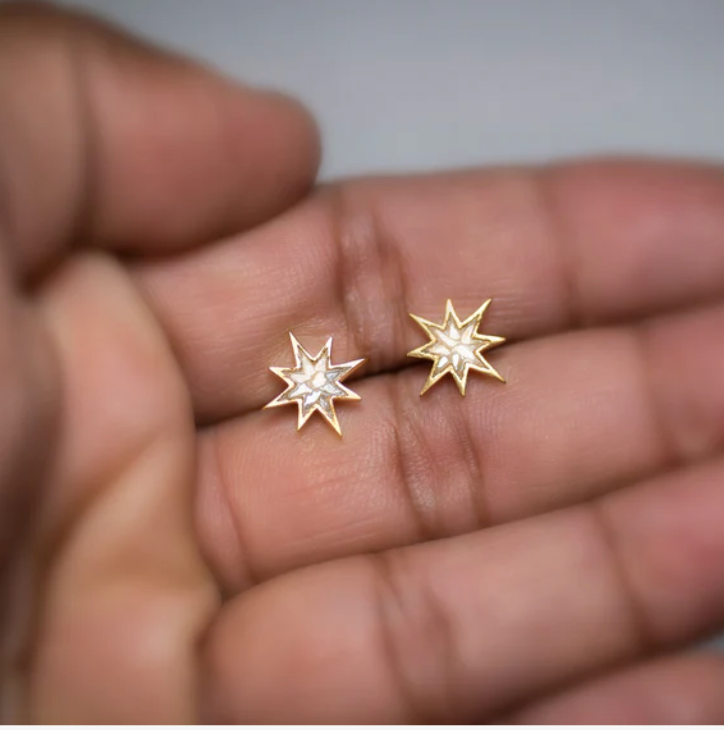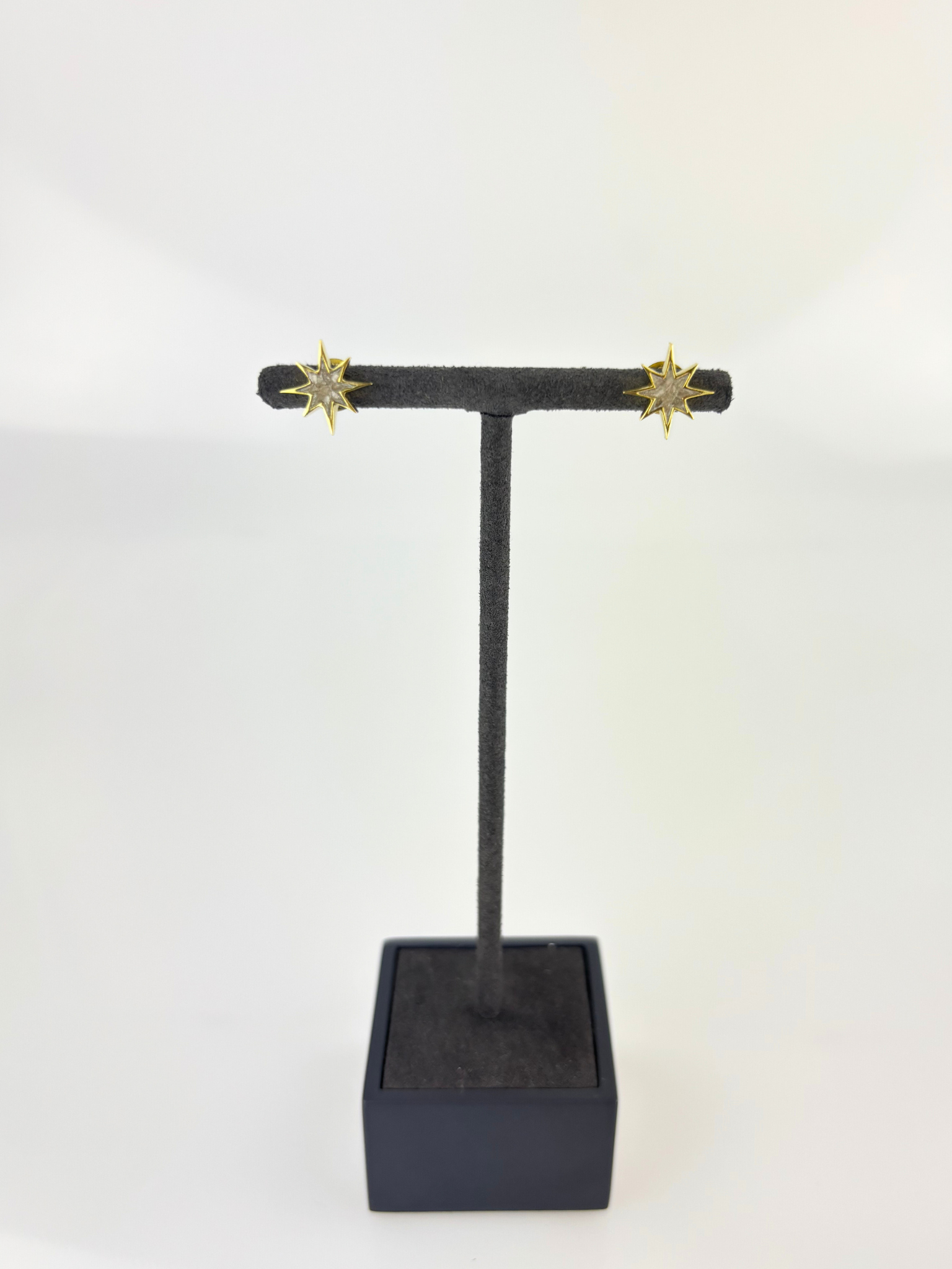 Adorn your ears with this sacred celestial symbol when you wear the bold Nash Studs. Vermeil 18K gold lines the chiseled diamond angles of these timeless earrings. Pair these gems with the Nash Pendant for the perfect starry display.