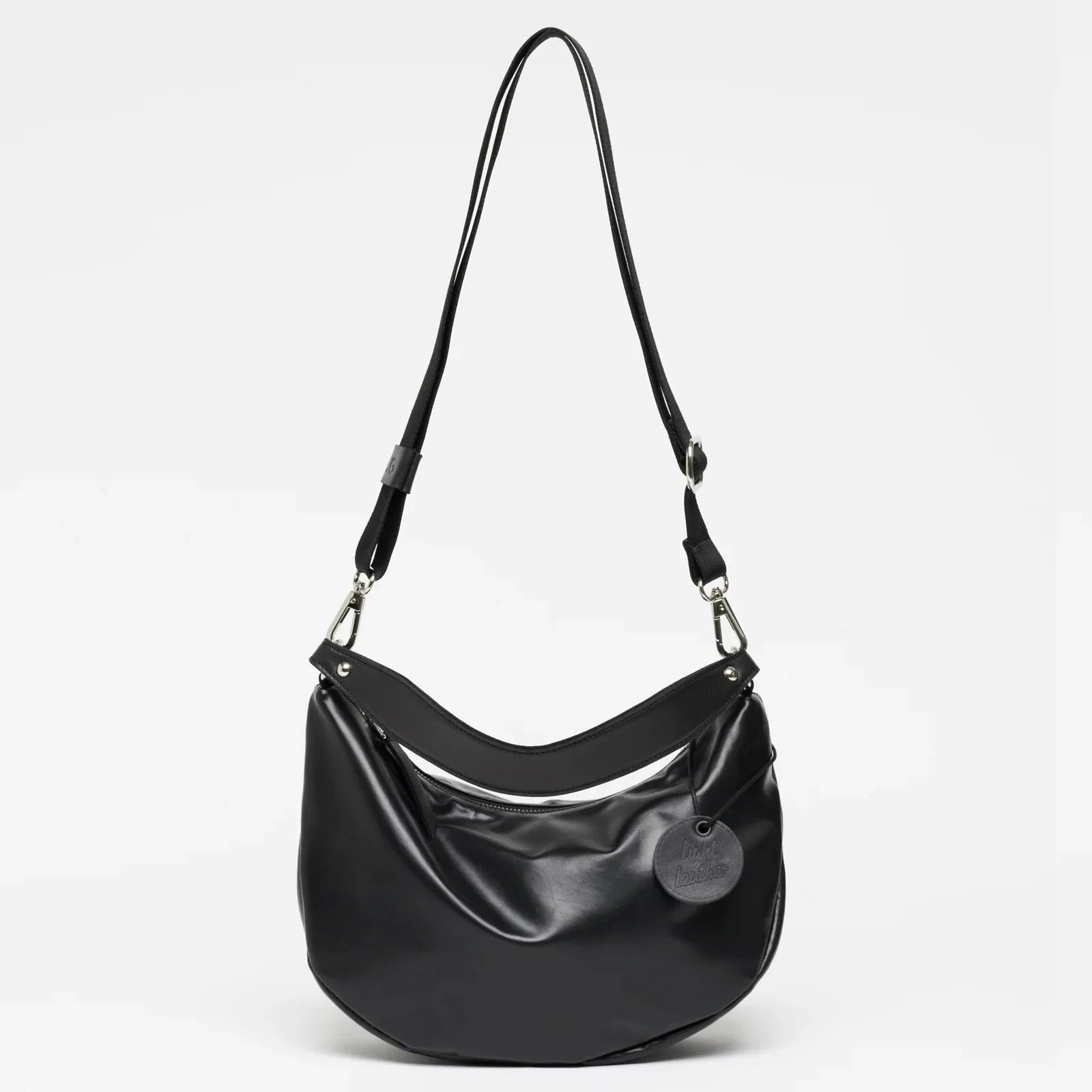 - Half-moon bag carried on the shoulder, crossbody or by hand
