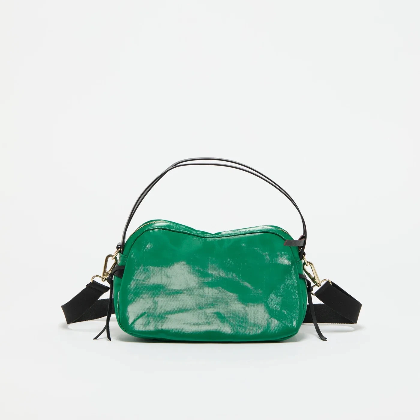 It can be worn crossbody, on the shoulder, or carried by hand thanks to its adjustable strap and double handle. Two interior stitched in slip pockets.