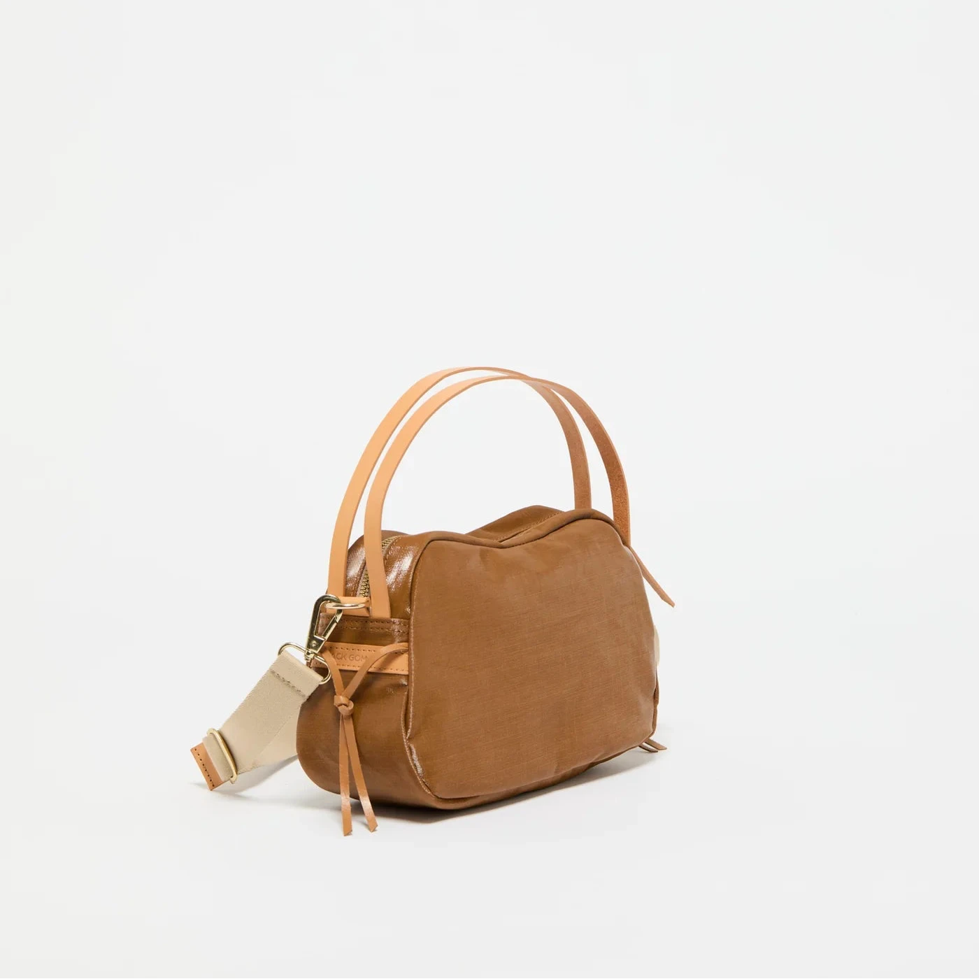 Created in a natural coated linen with a subtle glossy finish, the PREMIUM LINEN bags & accessories allude to a refined and elegant femininity. Our LEBOWL XS style is the ultimate smart bowling bag. Its vegetable-tanned leather handles and its brass finishings enhance the beauty of its coated linen fabric.